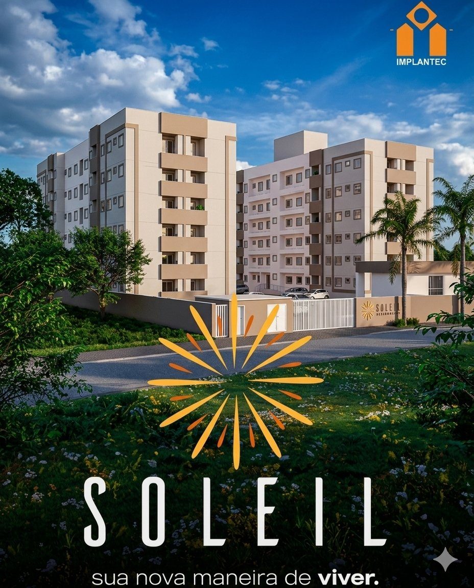 O Soleil Residencial é um projeto da Implantec com incorporação registrada, oferecendo duas torres modernas com apartamentos de 2 quartos, piso em porcelanato, sacada com churrasqueira e infraestrutura completa para o seu dia a dia.